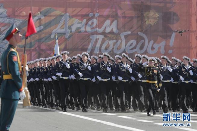 5月9日,在俄羅斯圣彼得堡,俄軍士兵參加閱兵式。5月9日是俄羅斯衛(wèi)國戰(zhàn)爭勝利紀念日。 新華社發(fā)(莫京娜攝)