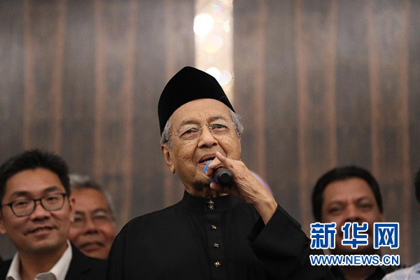 5月10日,在馬來西亞必打靈查亞,馬哈蒂爾宣誓就任總理后出席新聞發(fā)布會。新華社記者朱煒攝