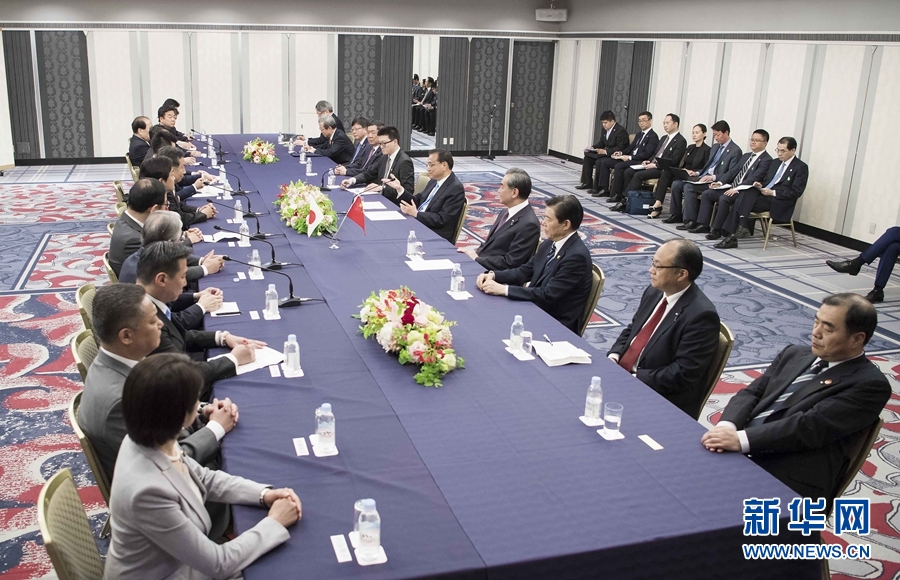 當(dāng)?shù)貢r(shí)間5月10日下午,國(guó)務(wù)院總理李克強(qiáng)在東京下榻飯店會(huì)見(jiàn)日本在野黨負(fù)責(zé)人。新華社記者 李濤 攝