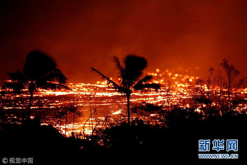 夏威夷火山持續(xù)噴發(fā) 熔巖噴涌火星四濺