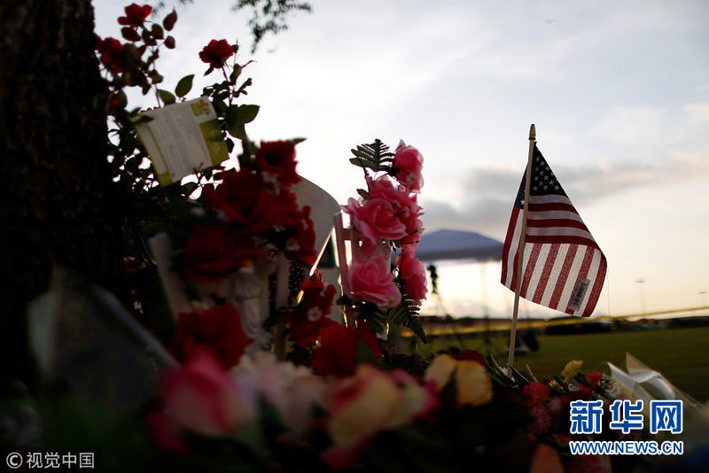 美國民眾獻(xiàn)花悼念圣菲高中槍擊案遇難者