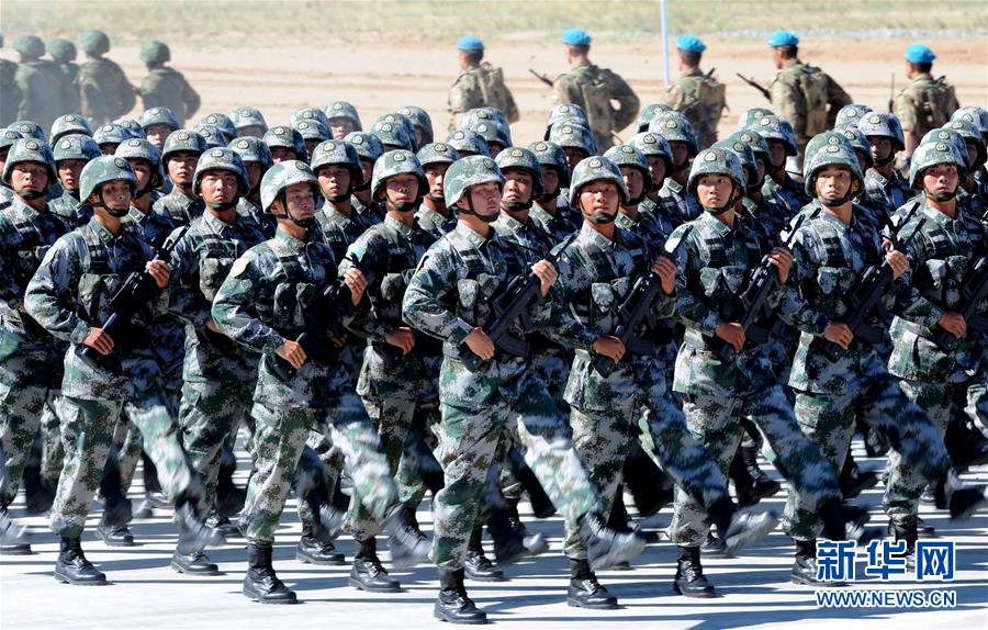 2014年8月24日,中國人民解放軍參演部隊在“和平使命—2014”上海合作組織成員國武裝力量聯(lián)合反恐軍事演習(xí)開始儀式上舉行分列式。17歲,恰如風(fēng)華正茂的青年。自世紀之初誕生于上海黃浦江畔,上海合作組織走過一段不平凡的發(fā)展歷程,和平穩(wěn)定能力不斷增強、發(fā)展動能不斷涌現(xiàn)、影響力不斷提升,邁入蓬勃發(fā)展新階段。17載風(fēng)雨同舟,上合組織走出了一條相互尊重、公平正義、合作共贏的新型國際關(guān)系之路。初夏6月,上合組織成員國元首理事會第十八次會議將在中國海濱城市青島舉行。弘揚“上海精神”、總結(jié)成功經(jīng)驗、共同規(guī)劃未來、推動擴員后的上合組織加強新老成員間的合作,青島峰會必將成為上合組織發(fā)展史上一座新的里程碑,續(xù)寫這一新型區(qū)域組織的新篇章。新華社記者 張領(lǐng) 攝
