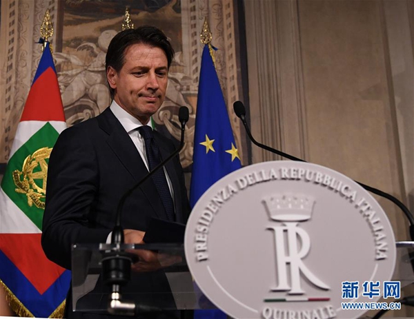 5月27日,在意大利首都羅馬,意新任總理孔特發(fā)表講話。據(jù)當(dāng)?shù)孛襟w報(bào)道,孔特27日晚間與總統(tǒng)馬塔雷拉會(huì)面并提交擬定的內(nèi)閣成員名單時(shí),馬塔雷拉否決了由意大利聯(lián)盟黨和五星運(yùn)動(dòng)力推的持疑歐立場的經(jīng)濟(jì)學(xué)家保羅·薩沃納出任財(cái)政部長??滋叵蚩偨y(tǒng)提出放棄組閣任務(wù)請(qǐng)求,請(qǐng)求得到總統(tǒng)確認(rèn)。新華社發(fā)(阿爾貝托·林格里亞攝)