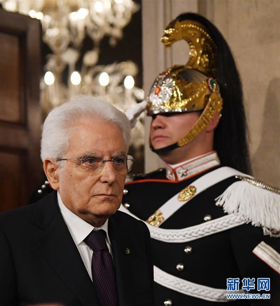 5月27日,在意大利首都羅馬,意總統(tǒng)馬塔雷拉出席新聞發(fā)布會。據(jù)當?shù)孛襟w報道,意大利新任總理孔特27日晚間與總統(tǒng)馬塔雷拉會面并提交擬定的內(nèi)閣成員名單時,馬塔雷拉否決了由意大利聯(lián)盟黨和五星運動力推的持疑歐立場的經(jīng)濟學家保羅·薩沃納出任財政部長??滋叵蚩偨y(tǒng)提出放棄組閣任務(wù)請求,請求得到總統(tǒng)確認。新華社發(fā)(阿爾貝托·林格里亞攝)