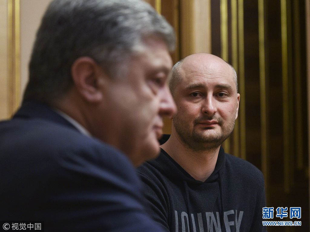 5月30日,烏克蘭基輔,烏克蘭總統(tǒng)波羅申科會見此前被報道“死亡”的俄羅斯記者巴布琴科。(圖片來源:視覺中國)