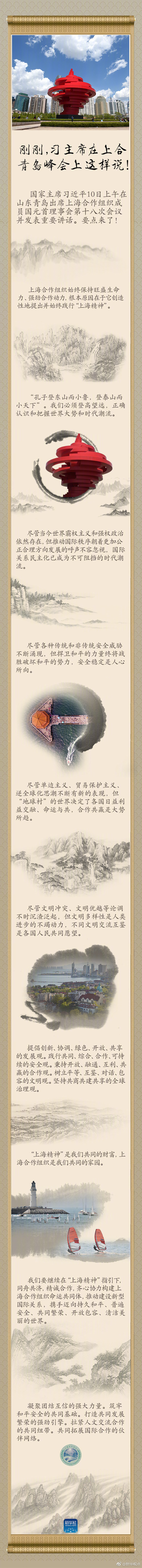 國(guó)家主席習(xí)近平10日上午在山東青島出席上海合作組織成員國(guó)元首理事會(huì)第十八次會(huì)議并發(fā)表重要講話。要點(diǎn)來(lái)了↓↓ ?????