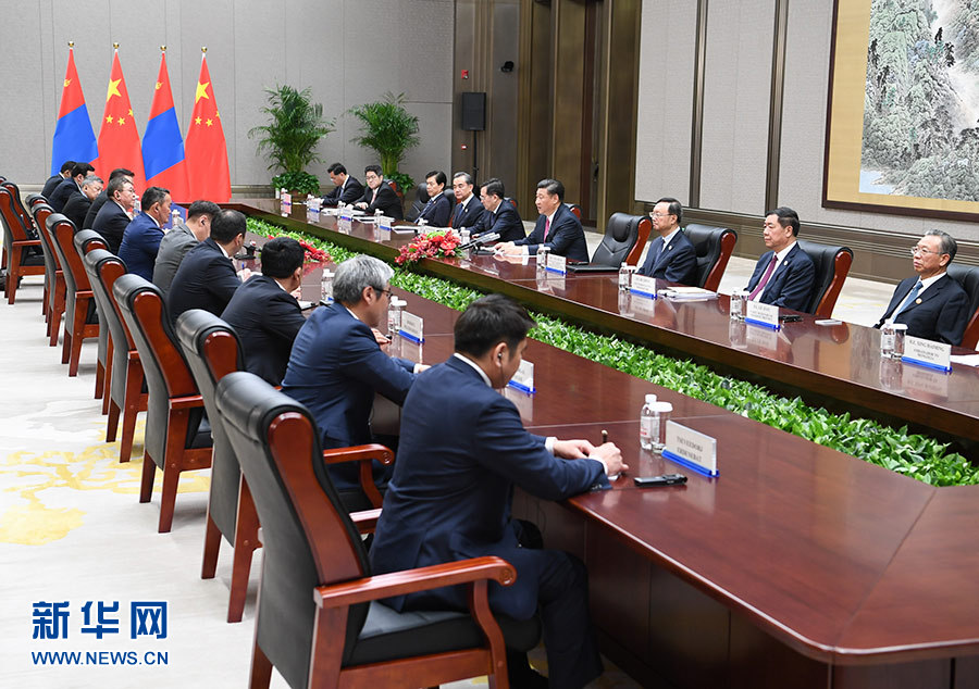 習(xí)近平指出,中蒙是山水相連的近鄰。中蒙關(guān)系發(fā)展符合兩國人民根本利益。我贊賞總統(tǒng)先生就任后多次表示重視中蒙關(guān)系,愿推動(dòng)中蒙全面戰(zhàn)略伙伴關(guān)系不斷發(fā)展。中方愿同蒙方一道,本著互信、合作、共贏原則,把握機(jī)遇,排除干擾,扎實(shí)開展各領(lǐng)域交往和合作,豐富中蒙全面戰(zhàn)略伙伴關(guān)系內(nèi)涵,開創(chuàng)兩國合作新局面。