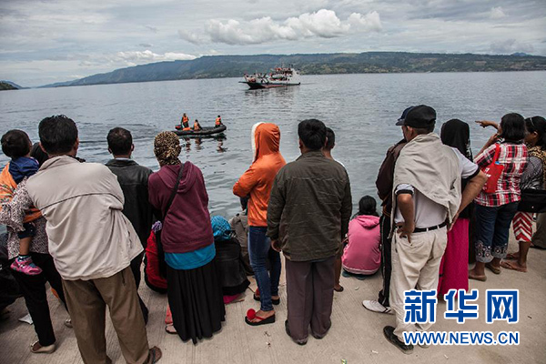 6月20日,在印度尼西亞北蘇門答臘省,人們在岸上觀看搜救行動(dòng)。新華社發(fā)(達(dá)馬尼克攝)