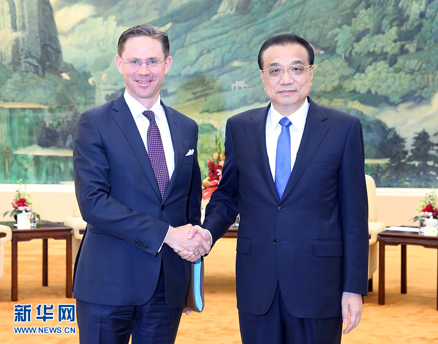 6月25日,國務(wù)院總理李克強(qiáng)在北京人民大會堂會見來華出席第七次中歐經(jīng)貿(mào)高層對話的歐盟委員會副主席卡泰寧。 新華社記者 姚大偉 攝