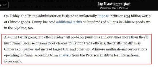 用《華盛頓郵報》自己的話說就是:“因為特朗普那些貿(mào)易官員的失策,這些制裁性關稅并不會打擊到多少中國企業(yè),反而把美國等其他非中國的跨國公司的在華分部當作了打擊對象”。