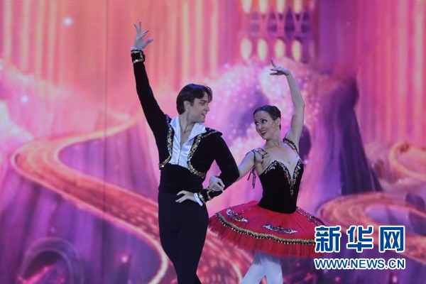 兩位演員在“斯拉夫巴扎”國際藝術(shù)節(jié)上表演芭蕾。新華社記者 魏忠杰攝