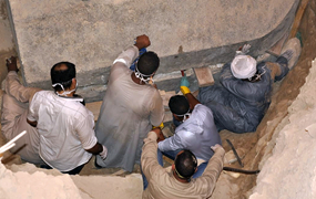 考古人員在其中一具遺骸的頭骨上發(fā)現(xiàn)了弓箭造成的創(chuàng)傷,結合其他證據(jù),初步判斷這三具遺骸的主人生前應為戰(zhàn)士,死于一場激烈的戰(zhàn)斗。經(jīng)分析,石棺為古埃及托勒密王朝或羅馬行省時期的遺物。