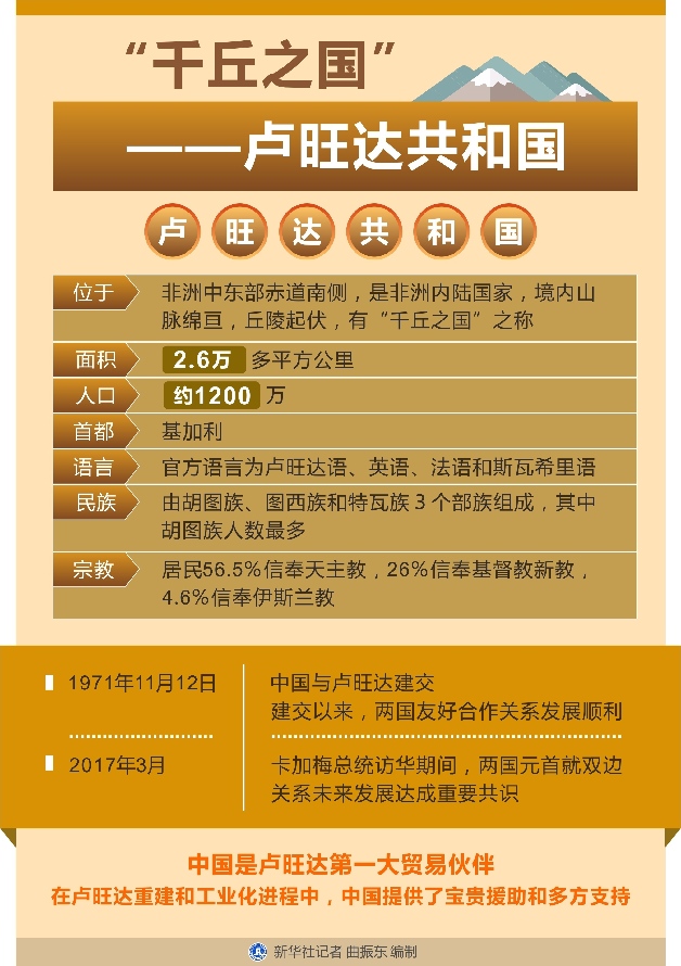盧旺達(dá)位于非洲中東部赤道南側(cè),是非洲內(nèi)陸國(guó)家。境內(nèi)山脈綿亙,丘陵起伏,有“千丘之國(guó)”之稱。