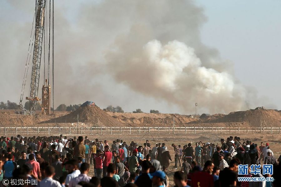 當(dāng)?shù)貢r(shí)間2018年7月27日,加沙,巴勒斯坦民眾在加沙和以色列邊境舉行大規(guī)模的示威活動(dòng)。(圖片來源:視覺中國(guó))