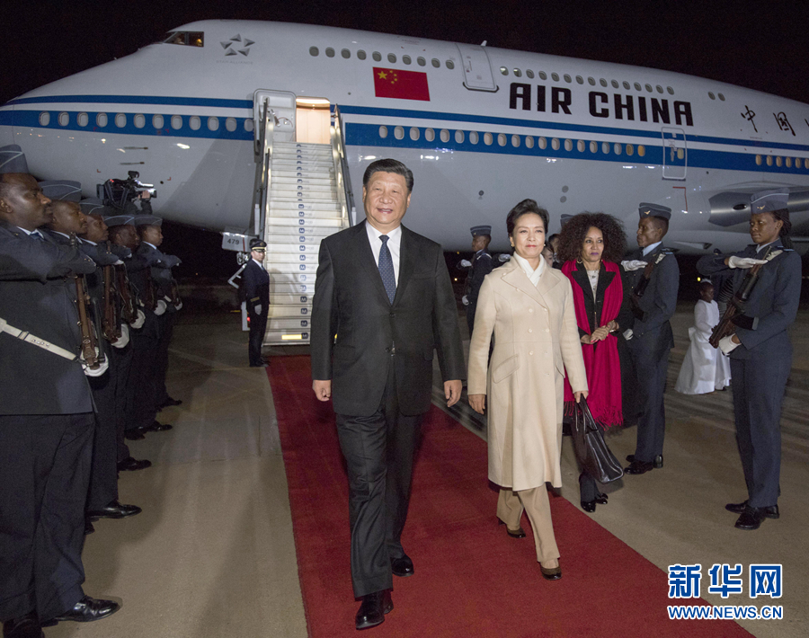 7月23日,國家主席習(xí)近平抵達(dá)比勒陀利亞,開始對南非共和國進(jìn)行國事訪問。習(xí)近平和夫人彭麗媛在機(jī)場受到南非外長西蘇魯?shù)日呒壒賳T熱情迎接。新華社記者李學(xué)仁攝