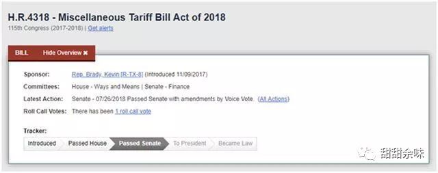 1.從法案本身來看,據(jù)美國國會官網(wǎng)顯示,其最早提交到眾議院的時間是2017年9月11日(對應(yīng)法案流程的第一步“Introduced”);下一節(jié)點是2018年1月16日,應(yīng)該也就是眾議院進行討論并通過的日期,此后就是1月17日,從這一天起,處理者由眾議院變成了參議院(對應(yīng)流程的第二步“Passed House”);再下一個節(jié)點就是2018年7月26日了。