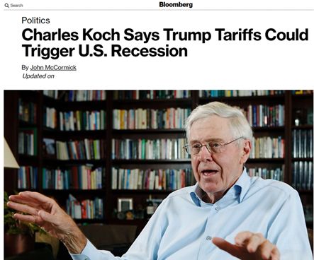 而在上周末剛剛結(jié)束的這么一場為期三天、并有數(shù)百人參加的活動上,科赫兄弟中年長的哥哥查爾斯·科赫就公開宣布他對美國政府的貿(mào)易戰(zhàn)行為很擔(dān)憂,認(rèn)為美國對中國等多個(gè)國家揮舞的關(guān)稅大棒將令美國經(jīng)濟(jì)面臨“災(zāi)難性”的衰退風(fēng)險(xiǎn)。