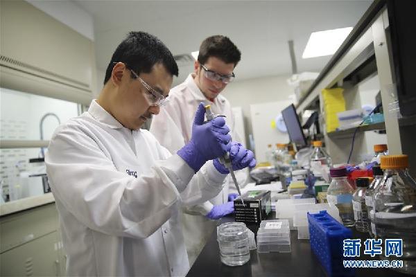 7月9日,在美國賓夕法尼亞州切斯特縣,方達醫(yī)藥公司研究人員在實驗室里工作。新華社記者王迎攝