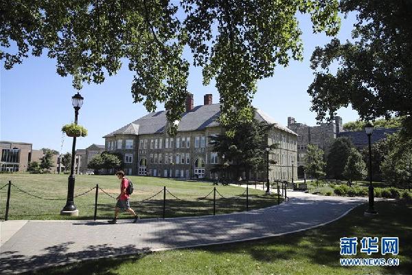 7月9日,在美國賓夕法尼亞州切斯特縣,學生走在西切斯特大學校園里。新華社記者王迎攝