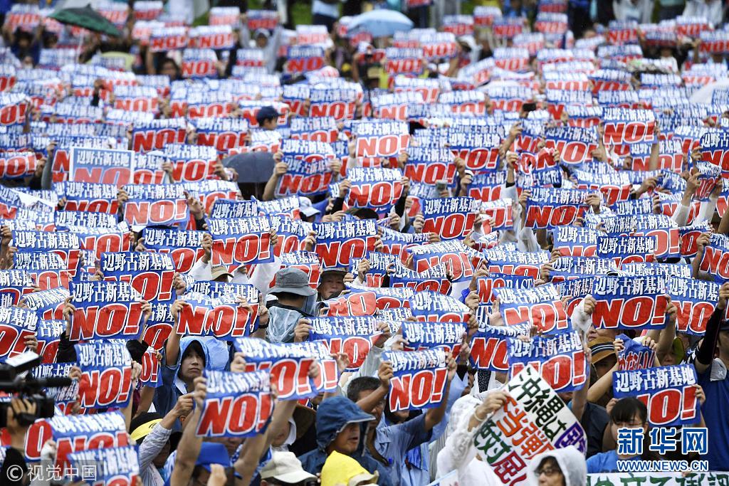 當(dāng)?shù)貢r間2018年8月11日,日本沖繩縣約7萬民眾8月11日在那霸市舉行大規(guī)模集會,反對駐日美軍將普天間基地遷往名護(hù)市邊野古地區(qū),要求駐日美軍放棄在邊野古地區(qū)新建基地并立即關(guān)閉普天間機(jī)場。當(dāng)天,日本東京都、大阪府、福岡、北海道縣等地民眾也同時舉行集會和游行,抗議日本政府推進(jìn)邊野古地區(qū)填海施工。 (圖片來源:視覺中國)