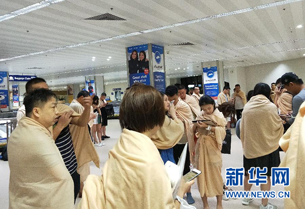 8月17日凌晨,乘坐廈航客機(jī)的乘客在飛機(jī)降落后在菲律賓馬尼拉機(jī)場等候。 新華社發(fā)
