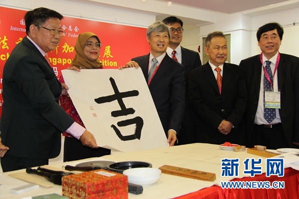 新華社新加坡9月1日電(記者王麗麗 夏立新)第13屆國際書法交流大展9月1日在新加坡書法中心開幕,新加坡總統(tǒng)哈莉瑪·雅各布出席了開幕式并當眾揮毫。
