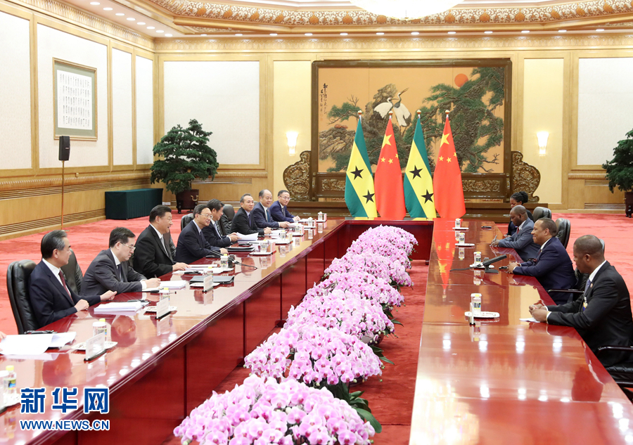 習(xí)近平指出,中非合作論壇北京峰會(huì)取得成功,有力證明了幾乎所有非洲國(guó)家都是中國(guó)的好朋友。我們歡迎圣多美和普林西比回到中非友好合作大家庭。2016年12月中圣普復(fù)交以來(lái),兩國(guó)各領(lǐng)域合作取得豐碩成果,充分證明雙方復(fù)交完全符合兩國(guó)人民根本利益。中方贊賞總理先生堅(jiān)持一個(gè)中國(guó)原則,積極推動(dòng)對(duì)華友好合作,中國(guó)將是圣普發(fā)展道路上值得信賴的好朋友、好伙伴,我們?cè)钢С质ザ嗝篮推樟治鞅鹊慕?jīng)濟(jì)社會(huì)發(fā)展,繼續(xù)同圣普在涉及彼此核心利益和重大關(guān)切問題上相互支持。芝麻開花節(jié)節(jié)高。我們相信兩國(guó)關(guān)系在一個(gè)中國(guó)原則基礎(chǔ)上一定會(huì)不斷邁上新臺(tái)階,造福兩國(guó)人民。