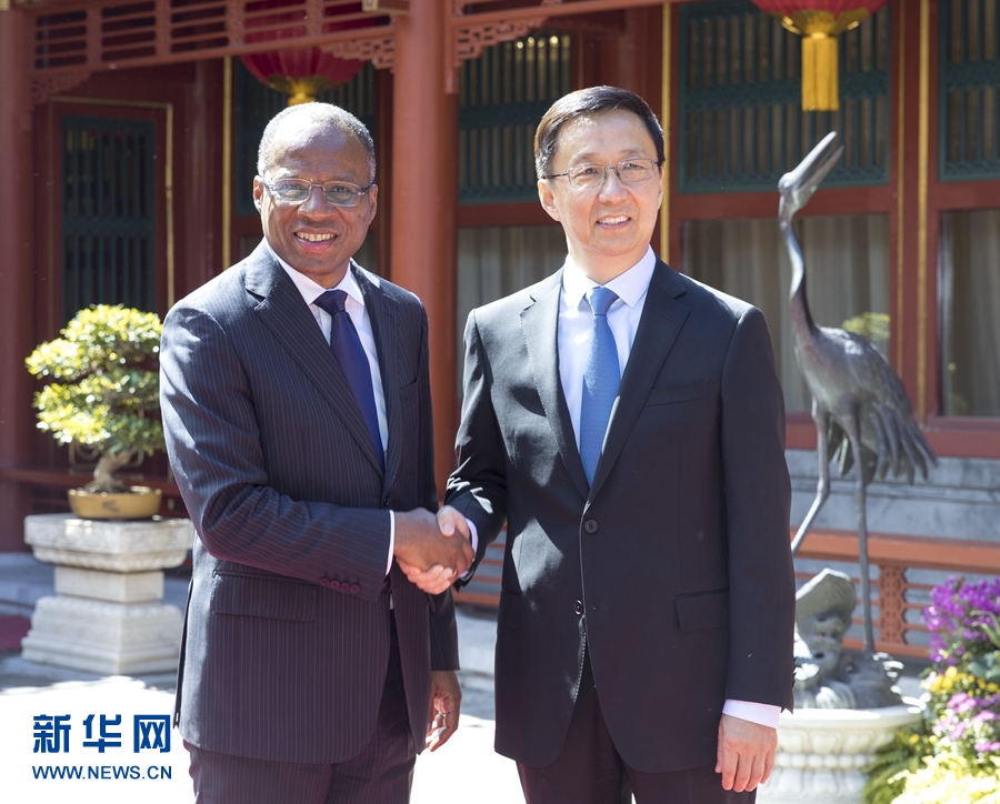 9月6日,中共中央政治局常委、國(guó)務(wù)院副總理韓正在北京釣魚臺(tái)國(guó)賓館會(huì)見(jiàn)佛得角總理席爾瓦。 新華社記者 王曄 攝