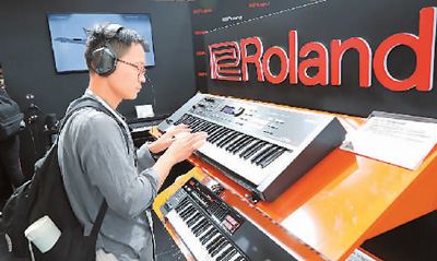 在首屆國(guó)際進(jìn)博會(huì)上,樂器將是很多人關(guān)注的焦點(diǎn)。圖為一名中國(guó)消費(fèi)者在試用新產(chǎn)品。新華社記者 方 喆攝