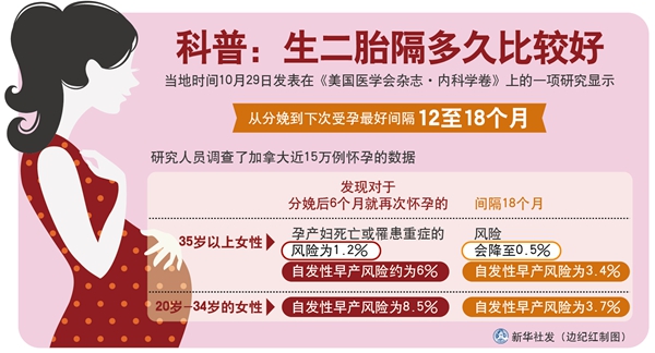 新華社華盛頓10月29日電(記者周舟)生二胎隔多久比較好?29日發(fā)表在《美國醫(yī)學會雜志·內科學卷》上的一項研究顯示,從分娩到下次受孕最好間隔12至18個月。