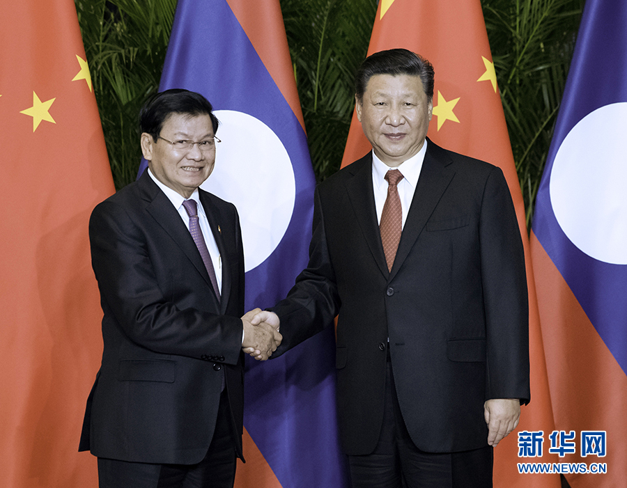 11月4日,國家主席習(xí)近平在上海會見老撾總理通倫。 新華社記者 丁海濤 攝