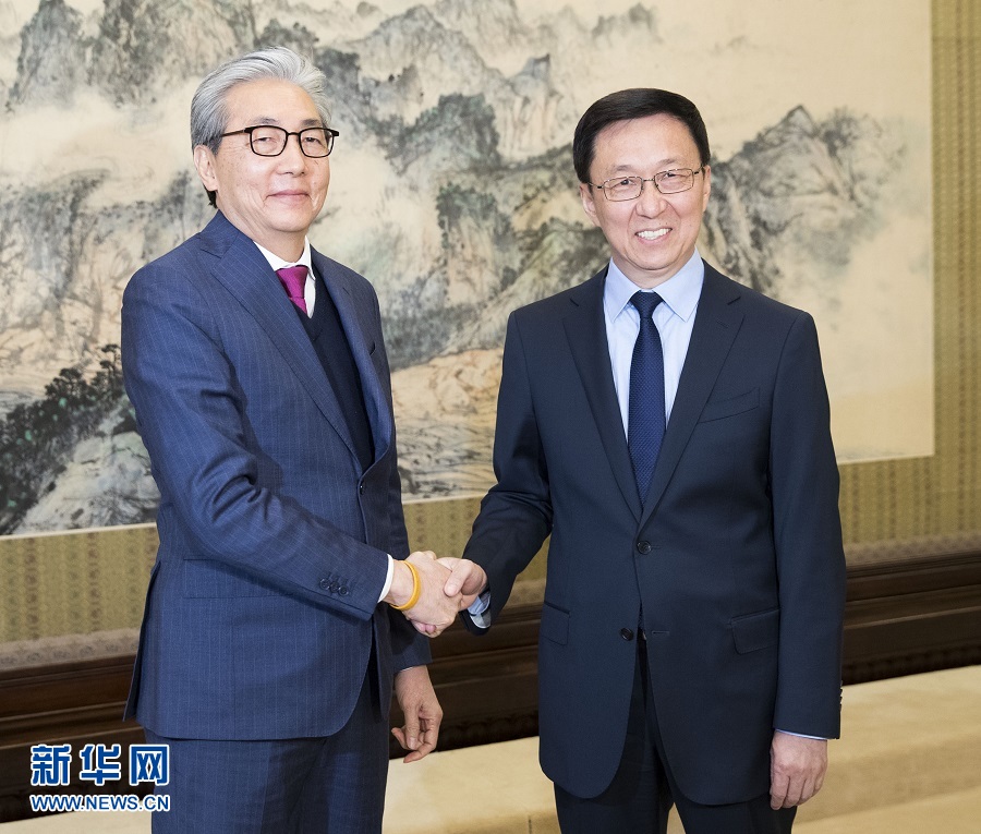 11月6日,中共中央政治局常委、國務院副總理韓正在北京中南海紫光閣會見泰國副總理頌奇?!⌒氯A社記者 黃敬文 攝