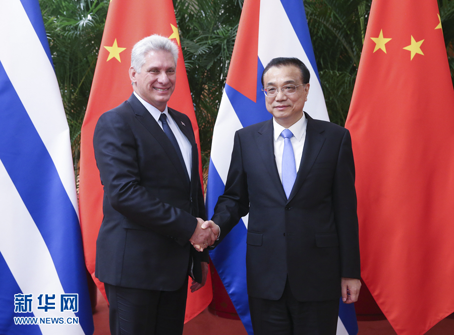 11月8日,國務(wù)院總理李克強(qiáng)在北京人民大會(huì)堂會(huì)見來華進(jìn)行國事訪問的古巴國務(wù)委員會(huì)主席兼部長(zhǎng)會(huì)議主席迪亞斯-卡內(nèi)爾。 新華社記者姚大偉攝
