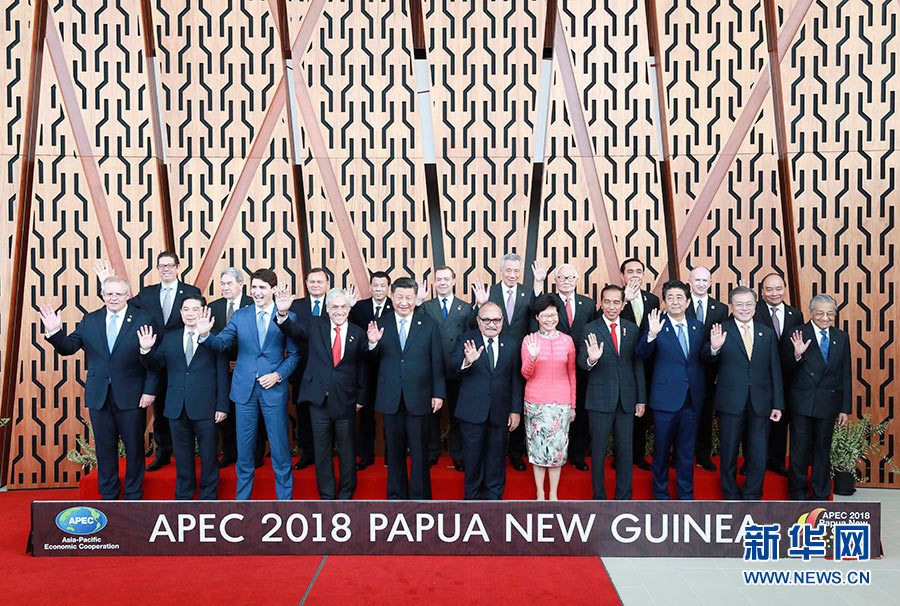 11月17日,國家主席習(xí)近平應(yīng)邀出席在巴布亞新幾內(nèi)亞莫爾茲比港舉行的亞太經(jīng)合組織工商領(lǐng)導(dǎo)人峰會并發(fā)表題為《同舟共濟(jì)創(chuàng)造美好未來》的主旨演講。同日,習(xí)近平還出席了亞太經(jīng)合組織領(lǐng)導(dǎo)人同工商咨詢理事會代表對話會。對話會前,習(xí)近平同其他亞太經(jīng)合組織成員經(jīng)濟(jì)體領(lǐng)導(dǎo)人、代表合影。 新華社記者 龐興雷 攝