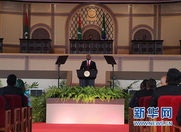 新華社馬累11月17日電(記者朱瑞卿 唐璐)馬爾代夫新任總統(tǒng)薩利赫17日在首都馬累國家足球場(chǎng)舉行的議會(huì)特別會(huì)議上宣誓就職。