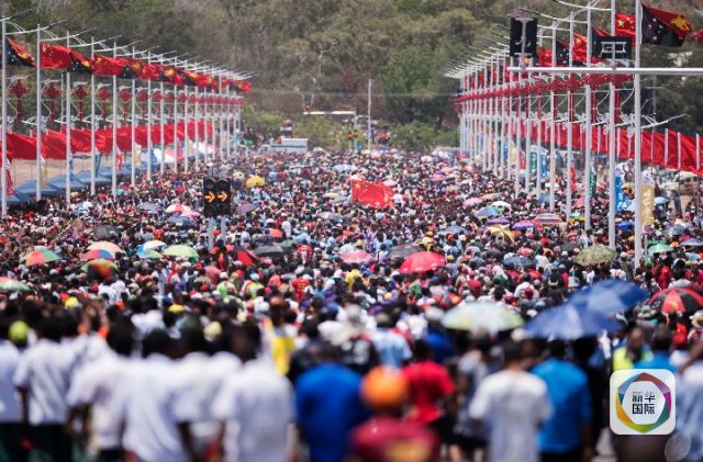 2018年11月16日,巴布亞新幾內亞首都莫爾茲比港。民眾慶祝中國援建的獨立大道正式啟用。(新華社記者費茂華攝)