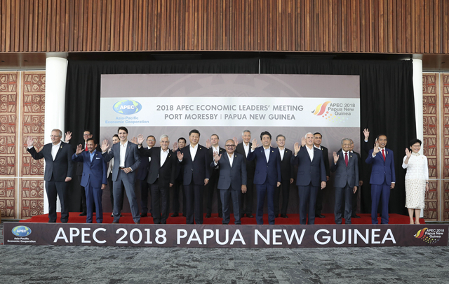2018年11月18日,亞太經合組織第二十六次領導人非正式會議在巴布亞新幾內亞莫爾茲比港舉行。國家主席習近平出席并發(fā)表題為《把握時代機遇 共謀亞太繁榮》的重要講話。會議開始前,習近平同其他亞太經合組織經濟體領導人、代表合影。(新華社記者丁林攝)