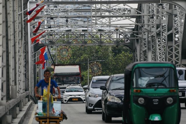 11月18日,菲律賓首都馬尼拉交通干道上懸掛菲律賓和中國國旗。新華社記者楊志剛攝