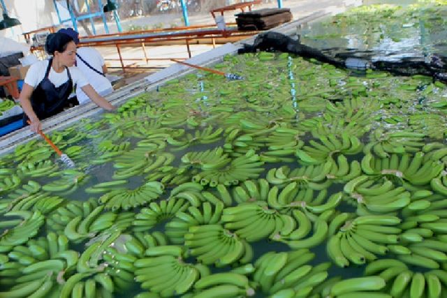 10月30日,一名工人在菲律賓棉蘭老島北達沃省的香蕉種植園清洗香蕉。新華社發(fā)(烏馬利攝)