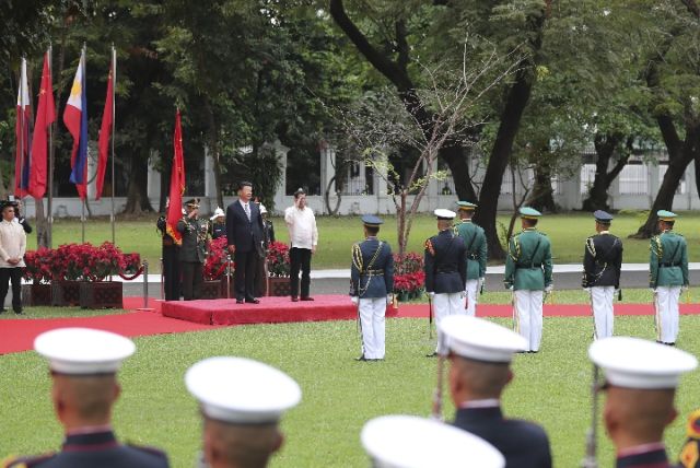 11月20日,國(guó)家主席習(xí)近平在馬尼拉同菲律賓總統(tǒng)杜特爾特舉行會(huì)談。會(huì)談開(kāi)始前,習(xí)近平出席杜特爾特在總統(tǒng)府前草坪舉行的隆重歡迎儀式。(新華社記者 丁林 攝)