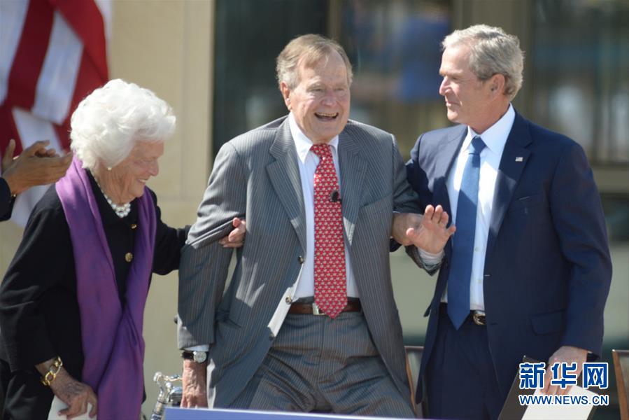 美國前總統(tǒng)喬治·赫伯特·沃克·布什辦公室11月30日晚發(fā)表聲明證實他于美國中部時間當(dāng)晚10時許去世,享年94歲。這是2013年4月25日,在美國達拉斯,美國前總統(tǒng)喬治·赫伯特·沃克·布什(中)出席小布什總統(tǒng)圖書館落成典禮的資料照片。新華社發(fā)(許迅攝)