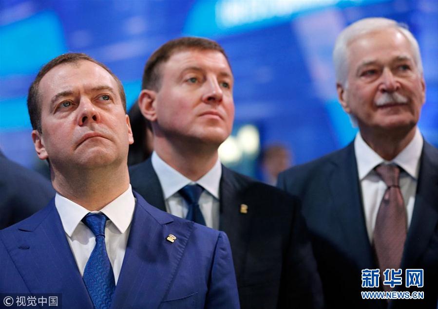 當(dāng)?shù)貢r(shí)間2018年12月8日,俄羅斯莫斯科,俄羅斯執(zhí)政黨“統(tǒng)一俄羅斯黨”年度會(huì)議舉行,俄羅斯總統(tǒng)普京和總理梅德韋杰夫出席會(huì)議。(圖片來(lái)源:視覺中國(guó))