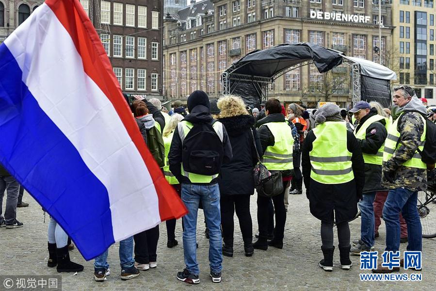 當(dāng)?shù)貢r(shí)間12月15日,荷蘭阿姆斯特丹,當(dāng)?shù)乇l(fā)“黃背心”抗議活動(dòng)。(圖片來源:視覺中國)