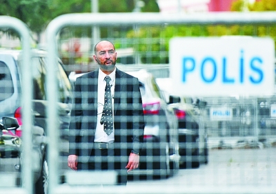 10月,卡舒吉案發(fā)生后,一名安保人員在沙特駐伊斯坦布爾領(lǐng)事館外執(zhí)勤。新華社發(fā)