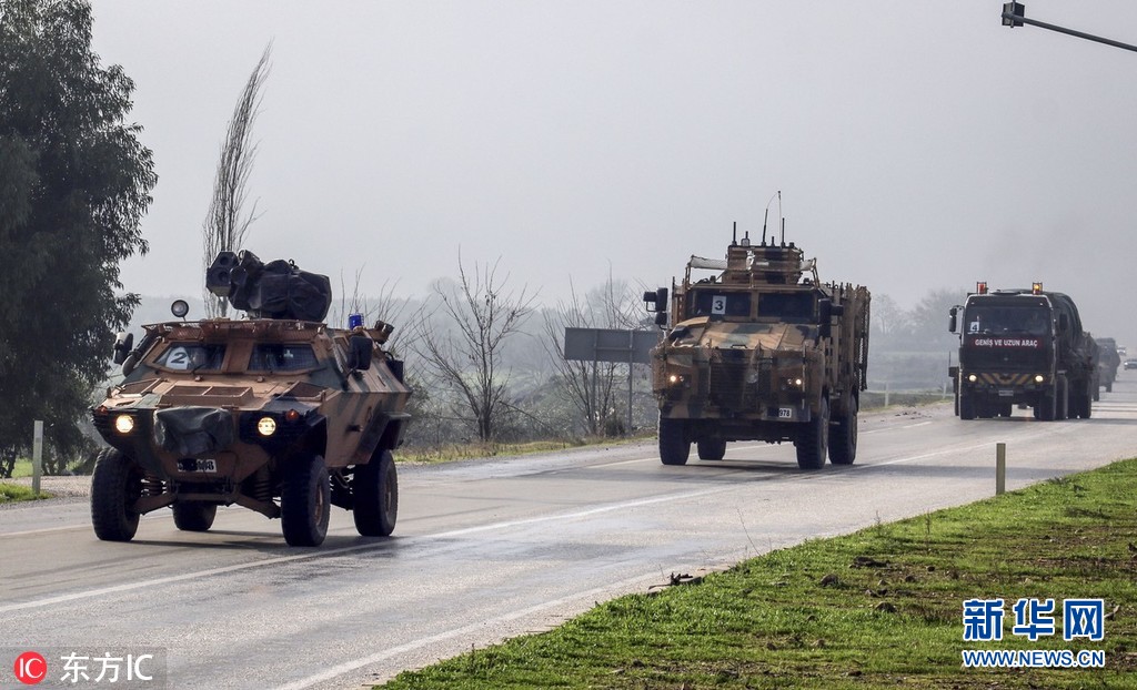 當(dāng)?shù)貢r間2018年12月24日,土耳其哈塔伊,土耳其裝甲車被派往敘利亞邊境的基利斯地區(qū),增援邊境部隊。(圖片來源:東方IC)