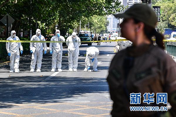 1月4日,在智利首都圣地亞哥,特警在爆炸襲擊現(xiàn)場調(diào)查。新華社發(fā)(豪爾赫·比列加斯攝)
