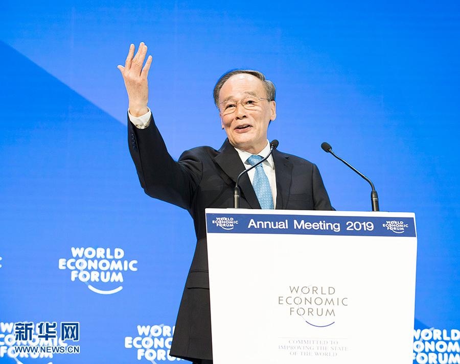 當(dāng)?shù)貢r(shí)間1月23日,國(guó)家副主席王岐山出席達(dá)沃斯世界經(jīng)濟(jì)論壇2019年年會(huì),發(fā)表題為“堅(jiān)定信心,攜手前行,共創(chuàng)未來(lái)”的致辭并回答提問(wèn)。 新華社記者 黃敬文 攝