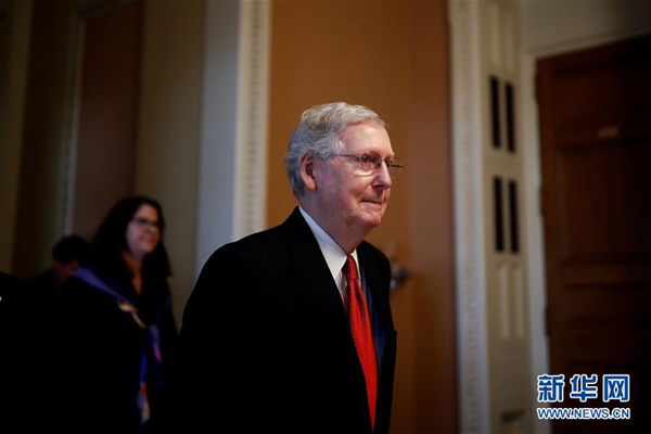 1月24日,在美國華盛頓國會山,國會參議院多數(shù)黨領袖麥康奈爾前往參議院。新華社發(fā)(沈霆 攝)