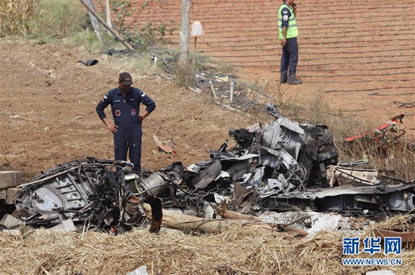 2月19日,在印度班加羅爾,軍人在墜機現(xiàn)場查看。新華社發(fā)