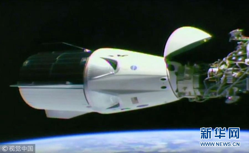 2019年3月3日,美國宇航局在任務(wù)現(xiàn)場直播視頻宣布,SpaceX“龍”飛船成功與國際空間站進(jìn)行對接。3月2日,載人“龍”飛船搭乘“獵鷹9”火箭在美國佛羅里達(dá)州肯尼迪航天中心39A發(fā)射臺升空。飛船里有個假人模型,用來記錄真實宇航員承受的各項數(shù)據(jù)。(視頻截圖)(圖片來源:視覺中國)